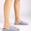 rund tå sandal med en bred vamp laget i skinnende stoff. Lett, fleksibel, sklisikker, gummisåle. Design og komfort vil følge deg i alle trinnene dine.