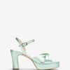 firkantet tå sandal laget i semsket skinn med en stropp vamp. 3 cm plattform og en 9 cm hæl. En ankelstropp som kan justeres ved hjelp av metallspennen. Lys, sklisikker, gummisåle. De ozzy sandalene vil være ditt beste tilbehør for alle utseende.